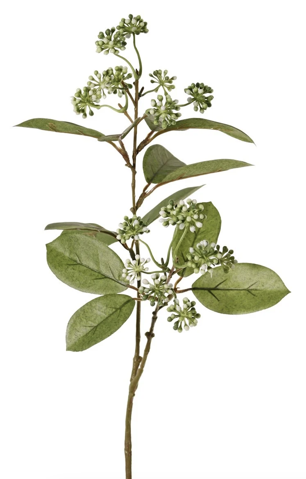 Deze bessentak is toch perfect voor in de herfst? We hebben hem ook nog in verschillende kleuren waardoor hij in ieder boeket past! De tak heeft groen met witte besjes. De hoogte is 70 cm. De tak word ook wel schoenknop genoemd.