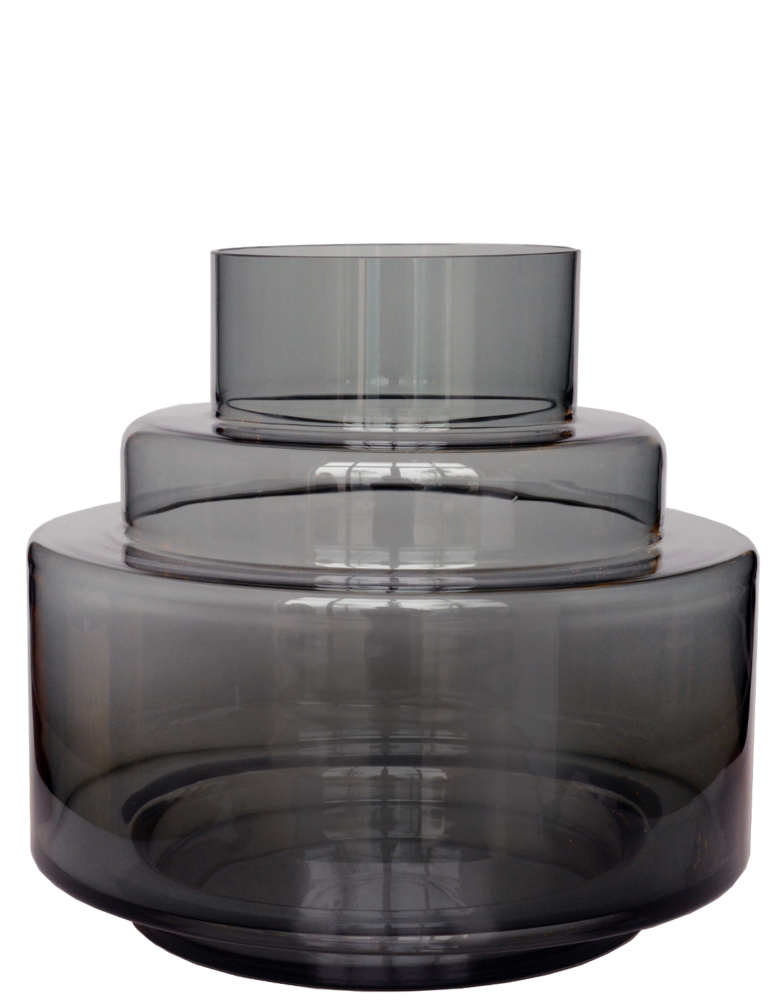 Deze prachtige vaas is uniek in vorm, uiterst stijlvol. De vaas is gemaakt van glas en heeft een grijze tint over het glas heen, hierdoor kan je minder goed door het glas heen kijken. Deze serie biedt diverse modellen aan, perfect om als setje neer te zetten.