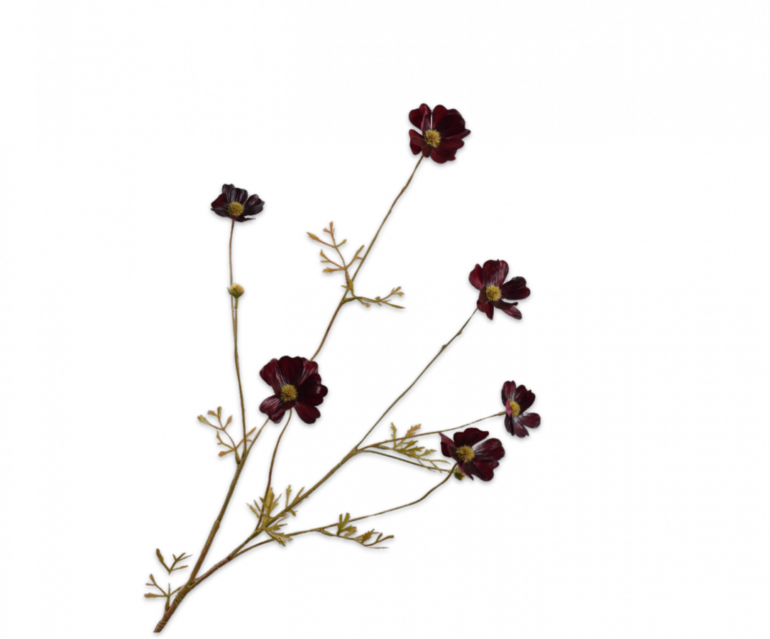 Deze hele mooie bordeaux/paarse cosmos tak is 77 cm hoog. Erg mooi voor in een donkerder boeket.