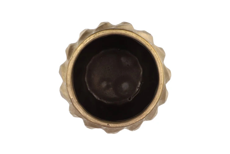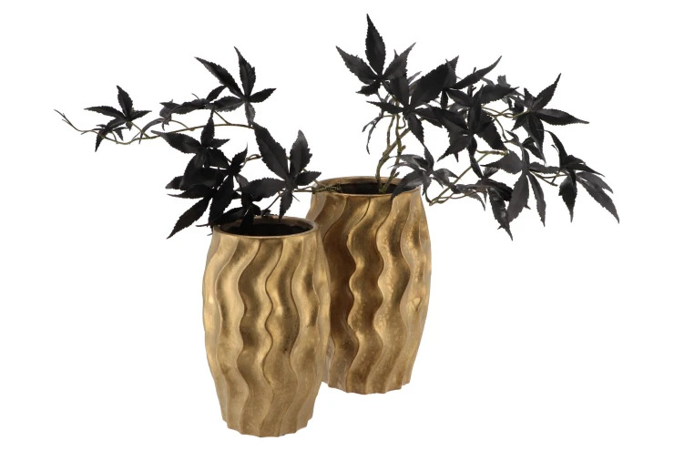 Een prachtige gouden vaas, perfect als decoratief item. Deze vaas heeft een unieke vorm en is met de hand gemaakt van aardewerk. Ook is het erg leuk om de vaas af te decoreren met een aantal zijdentakken. Verkrijgbaar in verschillende maten.