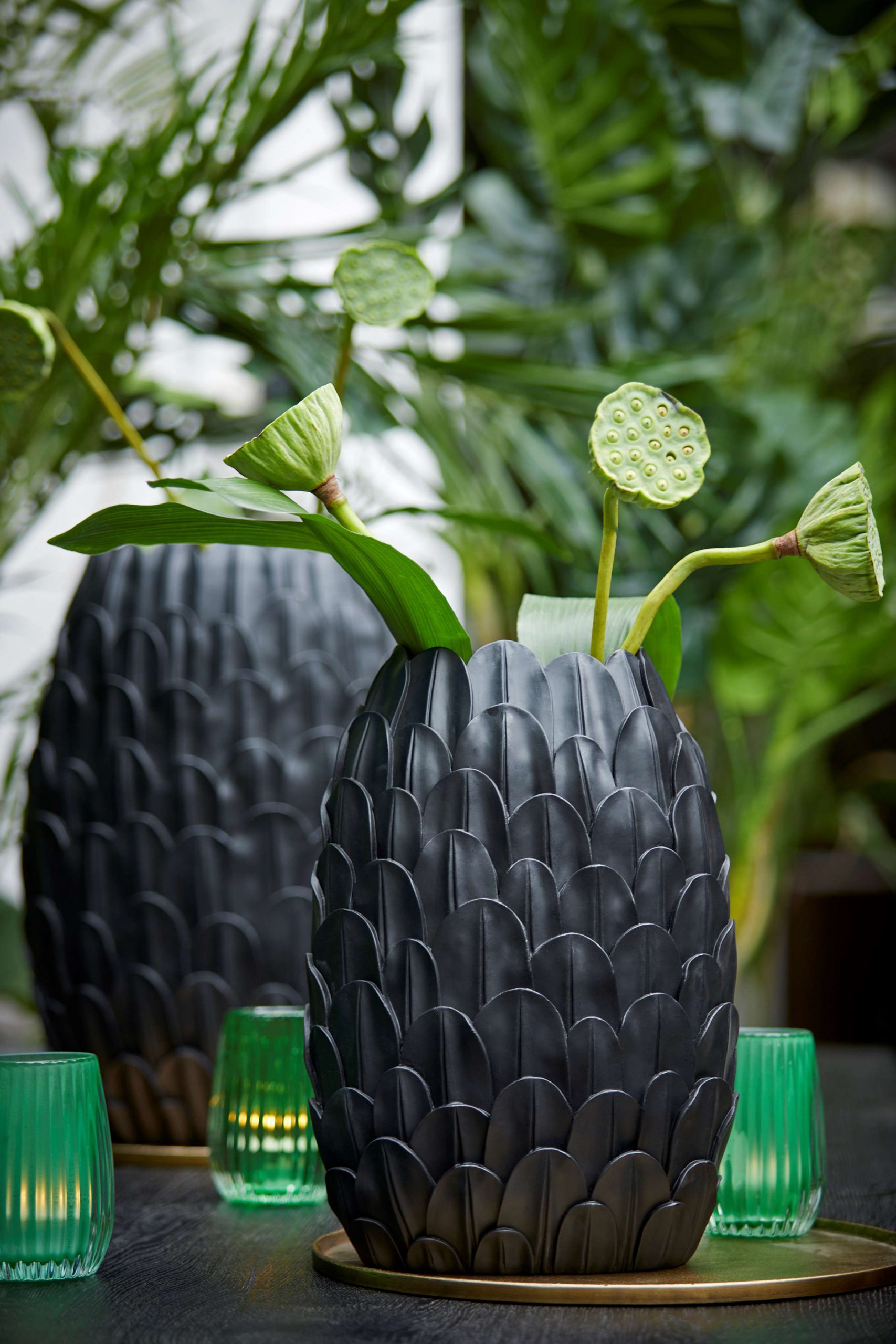 De schubben vaas in het zwart, is een trendy en stijlvolle toevoeging aan je interieur. Met zijn slanke vorm is deze vaas perfect geschikt voor plaatsing op de vensterbank. Combineer deze vaas met prachtige zijdentakken naar keuze en je hebt een compleet plaatje.