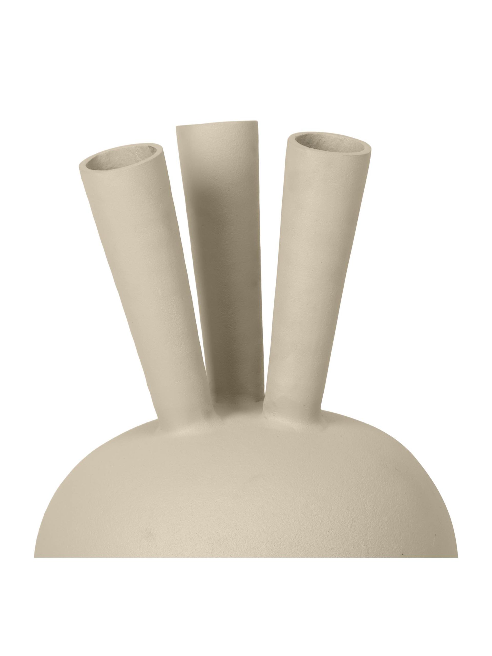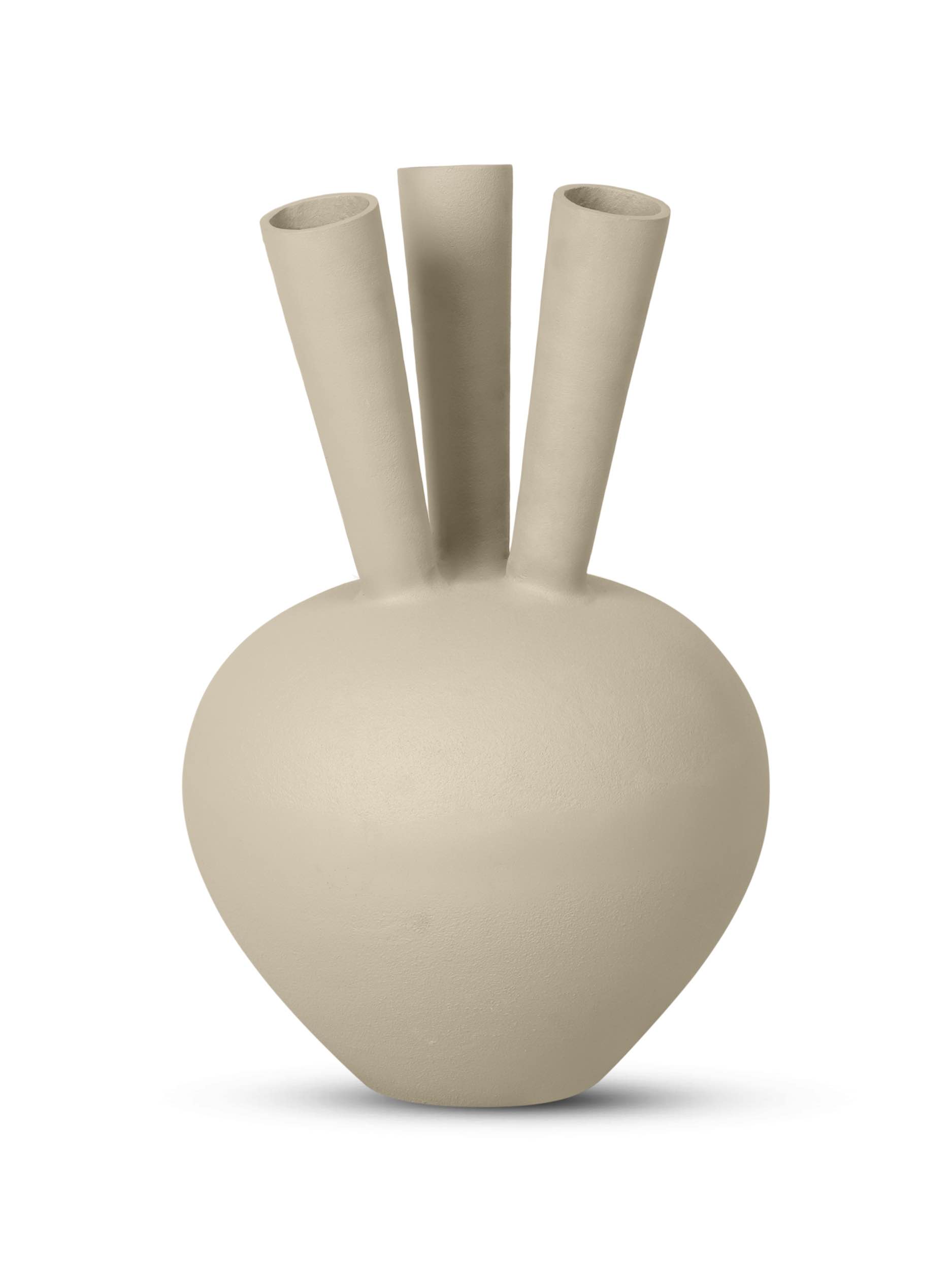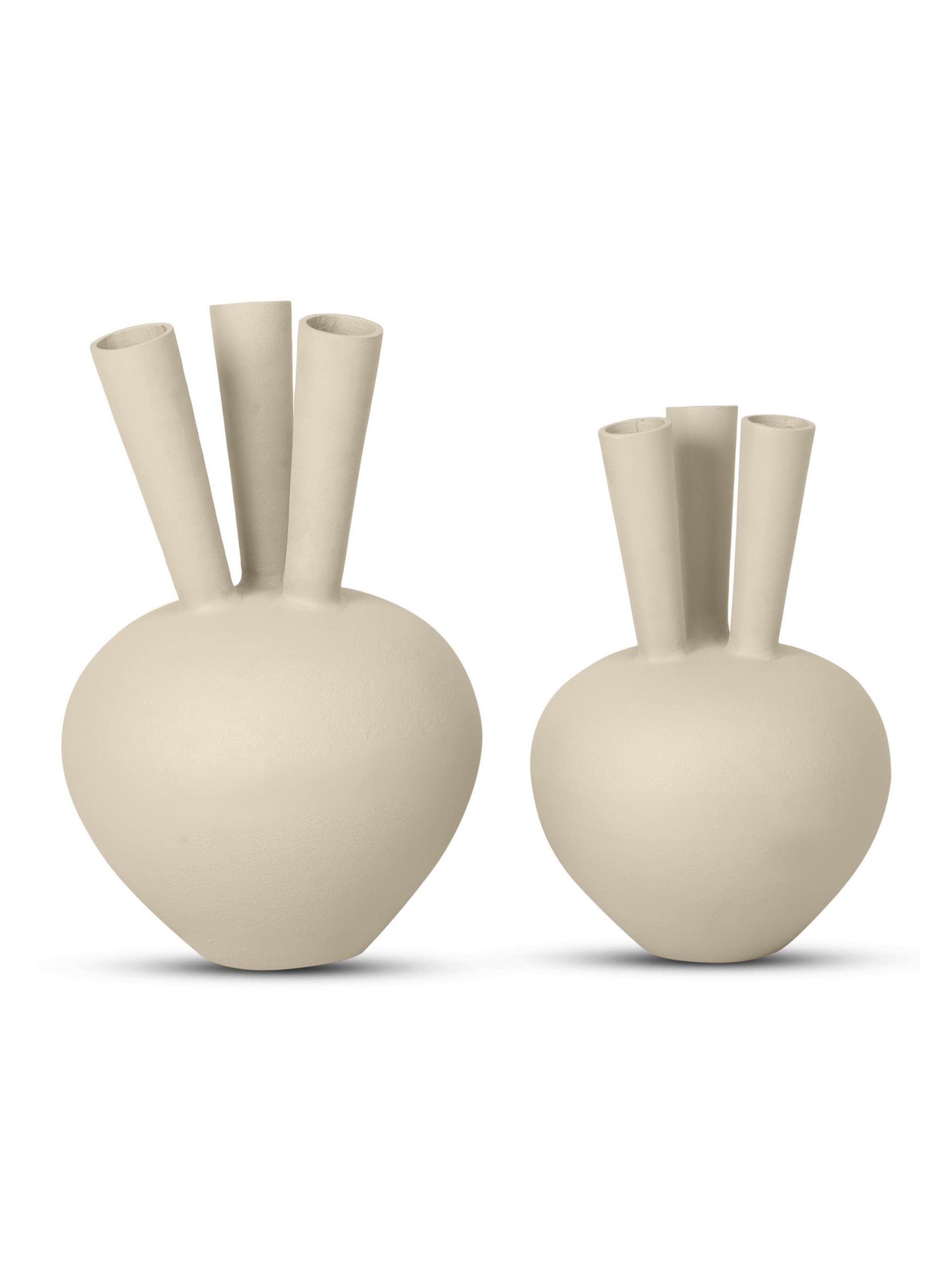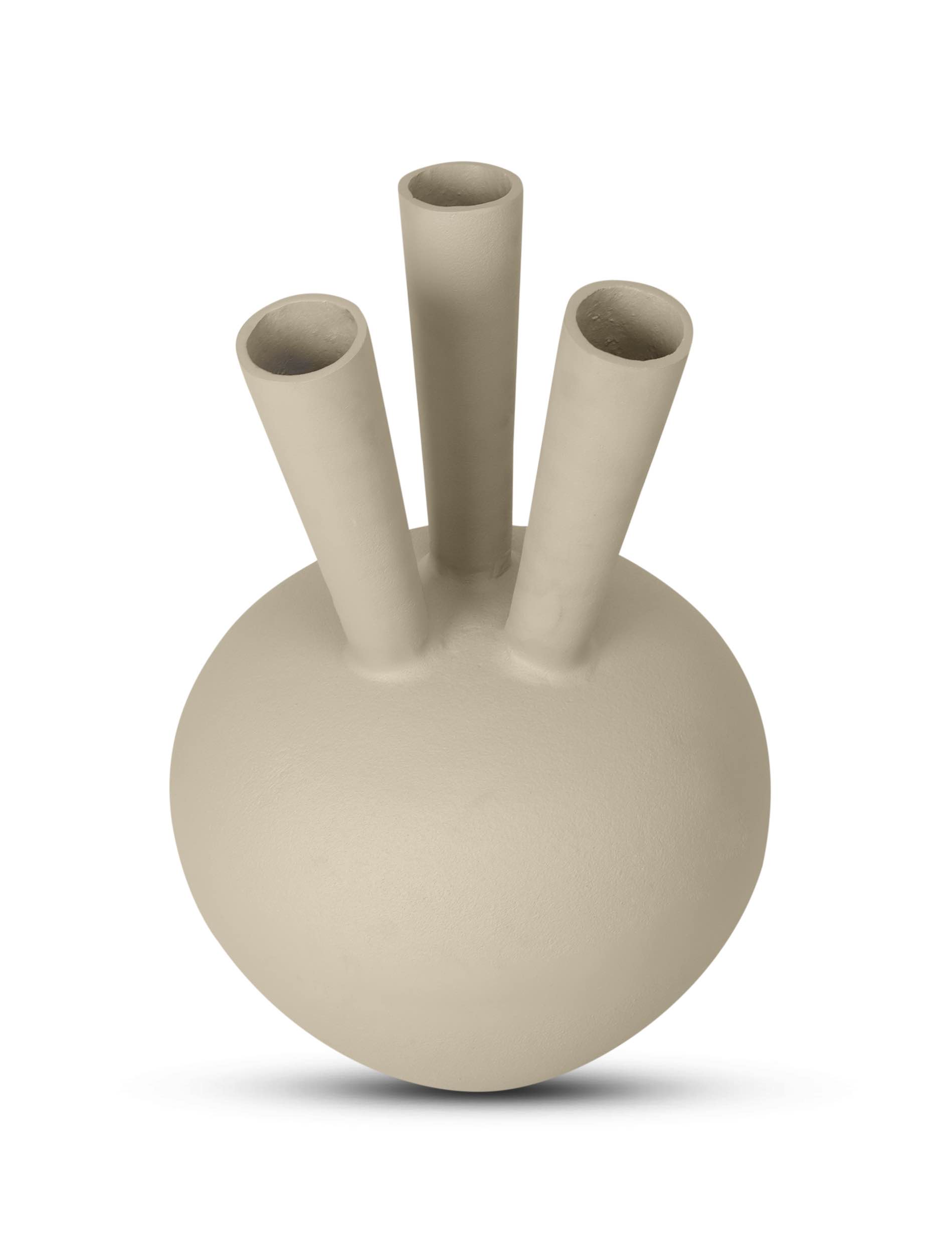 Deze toetervaas is van het merk Bombyxx erg mooi te combineren met onze zijdenbloemen boeketten die met vakmanschap samengesteld zijn. De vaas heeft een trendy beige sand kleur hiermee kan je verschillende stijlen creëren in huis, van strak tot stoer. De toetervaas is gemaakt van aluminium en is daarom niet 100% waterproof. Wij adviseren daarom ook enkel onze kunstbloemen. De toetervazen zijn verkrijgbaar in verschillende maten en kleuren. Deze toetervaas bevat 3 toeters.
