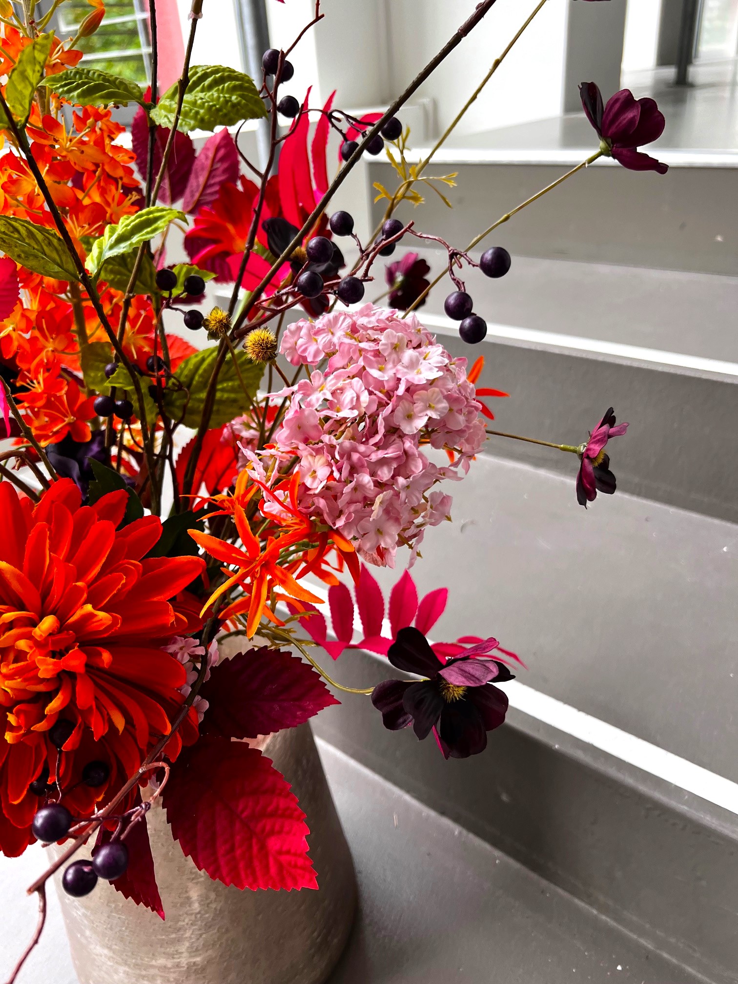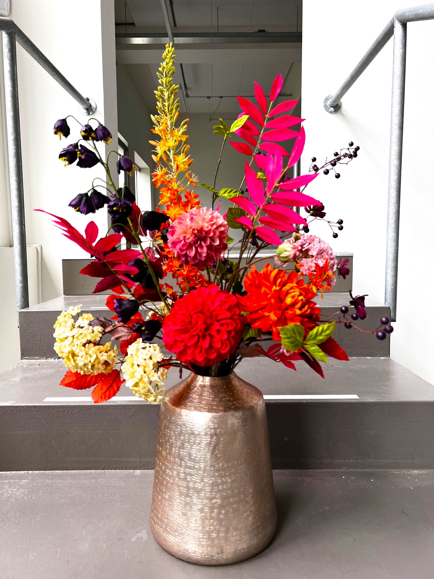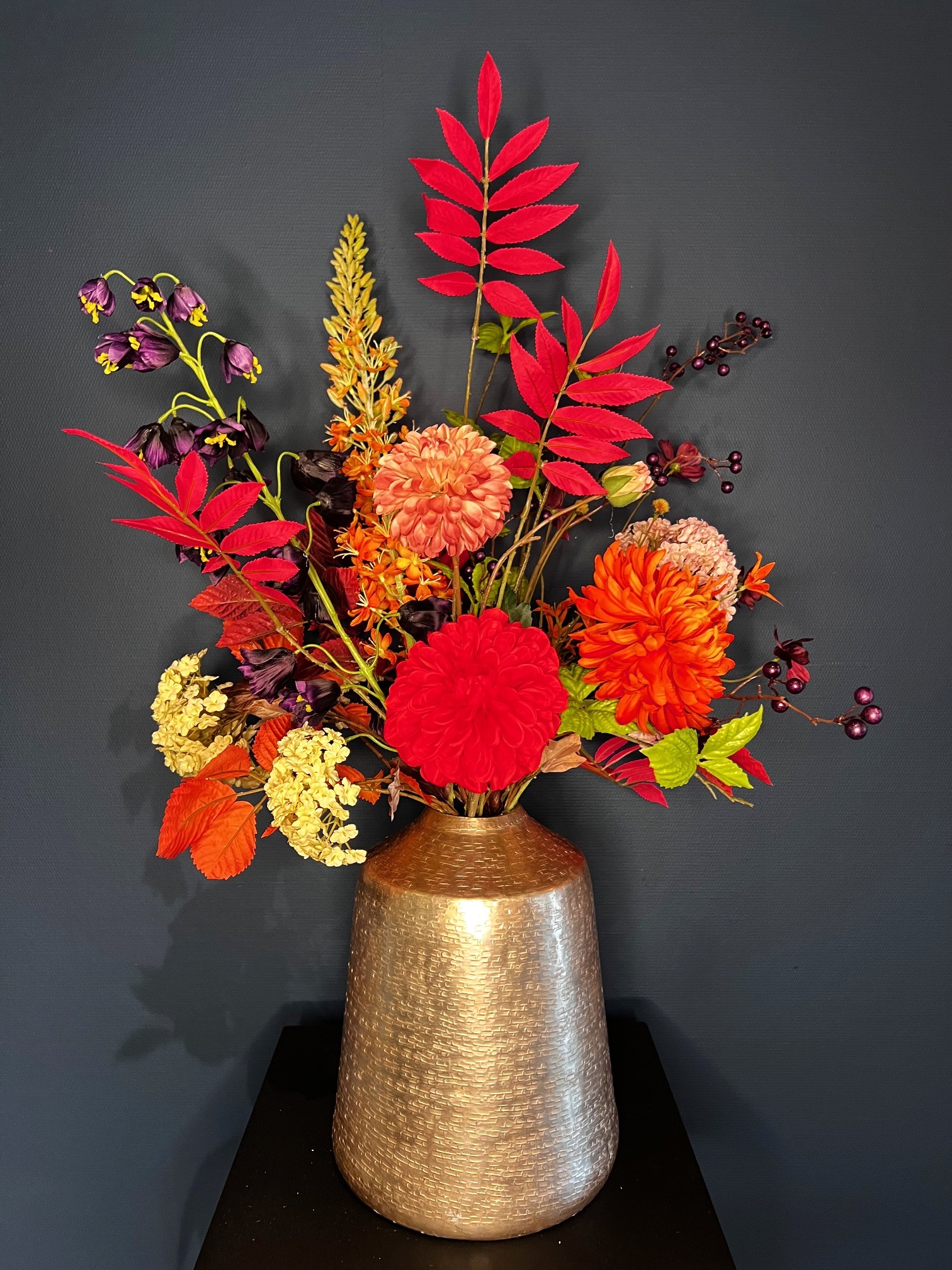 Mooie kleuren zijn verwerkt in dit boeket, een zijdenboeket geschikt voor iedere ruimte.