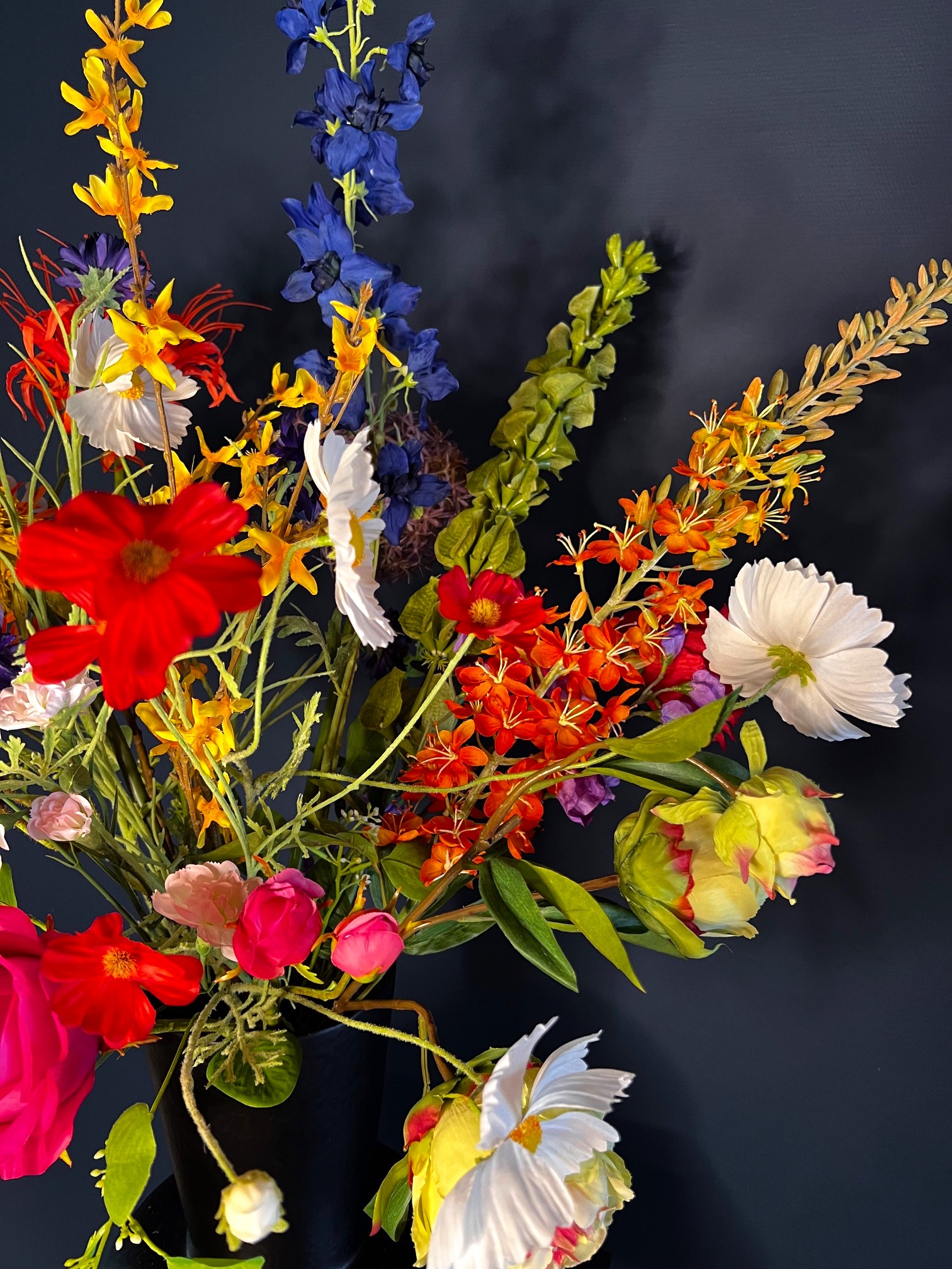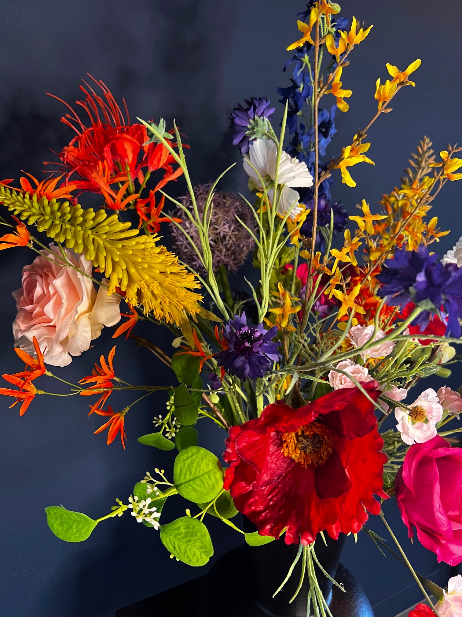 De prijs van dit kunstboeket is zonder de vaas, deze kun je ook bestellen in de shop.