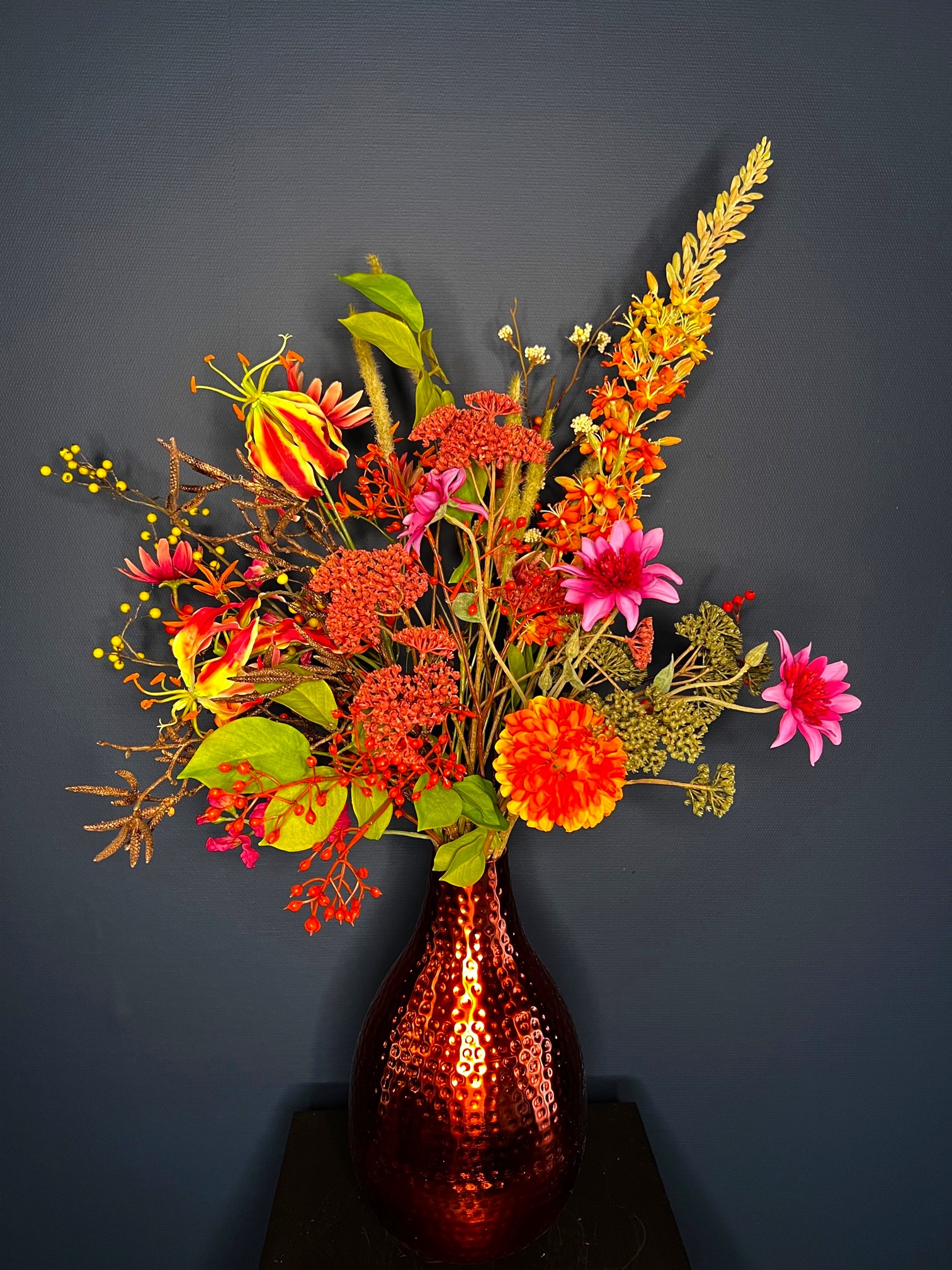 De meeste bloemen zijn van Silkka flowers, dus niet van echt te onderscheiden.