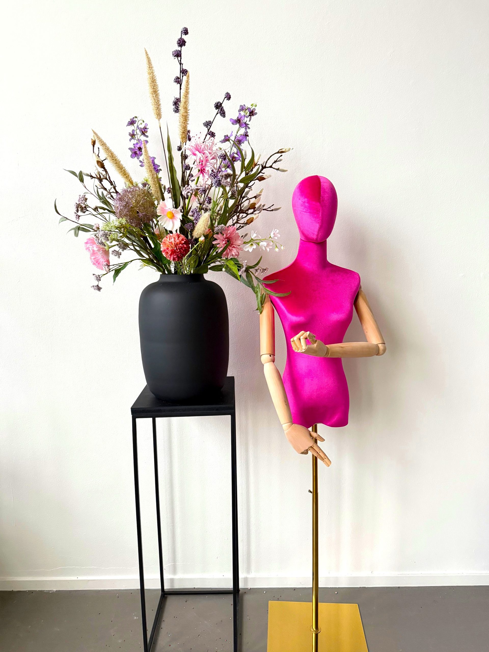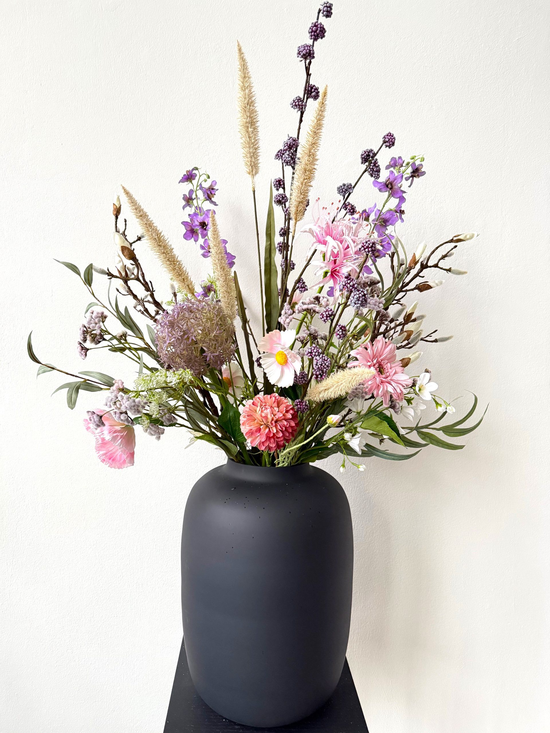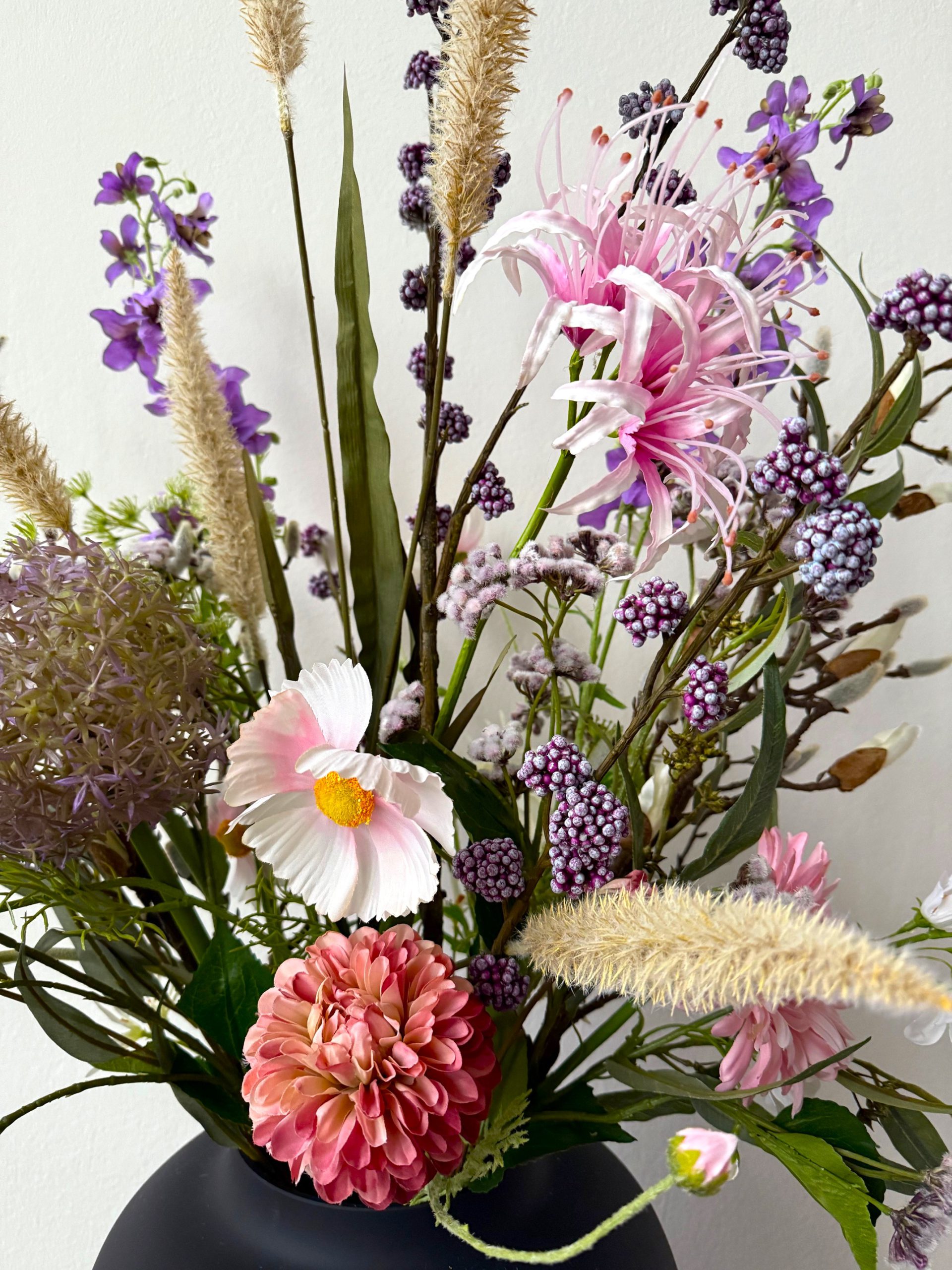 De prijs van dit kunstboeket is zonder de vaas, deze kun je bestellen in de shop.