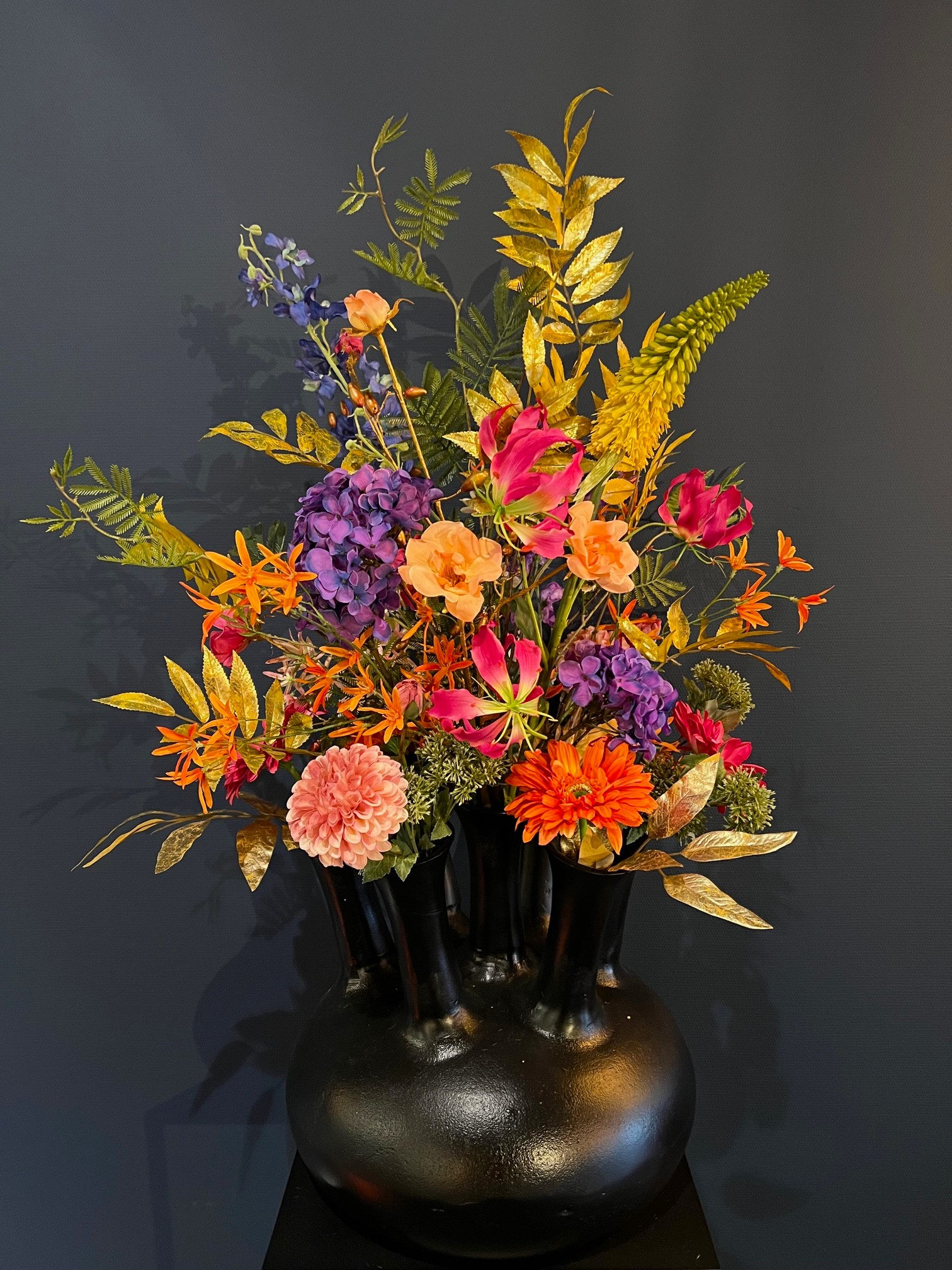 Zijdenboeket Lauren voor in de gouden of zwarte tuitvaas